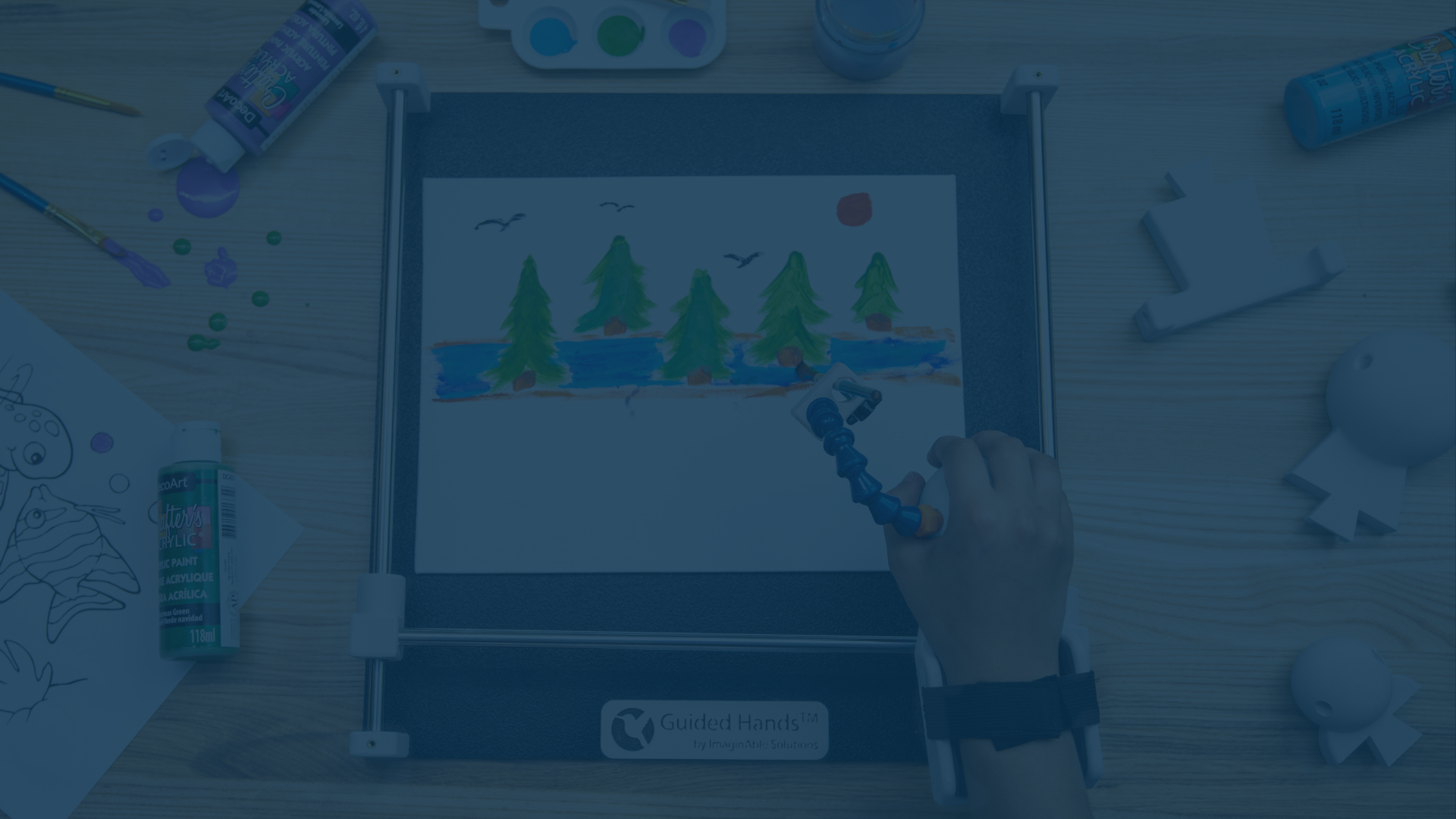 A: To keep Guided Hands® stable, we recommend securing it to the table with a clamp or a suction cup. For added convenience, suction cups are included in our Adaptations Kit.